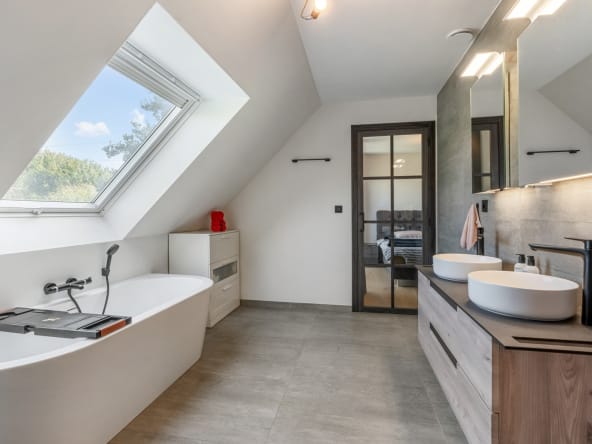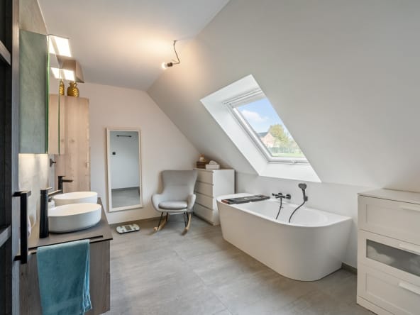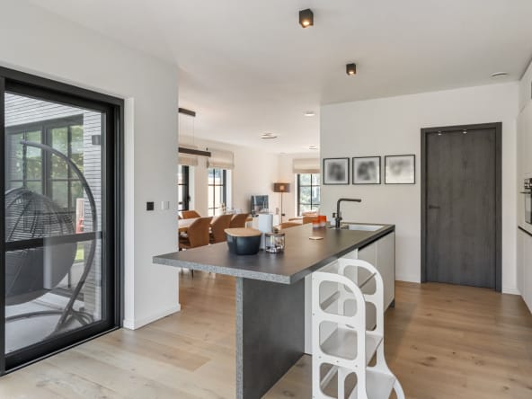 Deze uitzonderlijke woning combineert hedendaags wooncomfort met een serene ligging in een doodlopende straat, waardoor u er in alle rust kunt genieten van luxe, licht en ruimte.