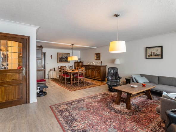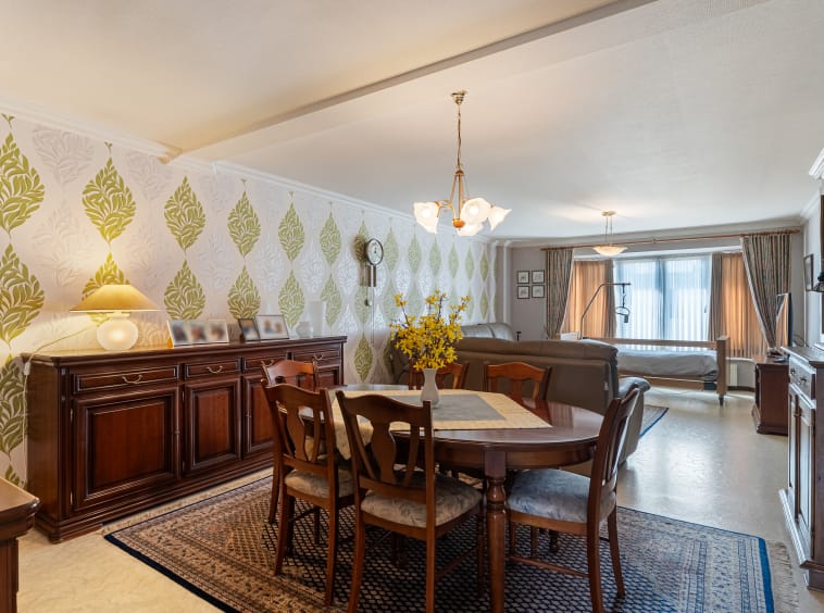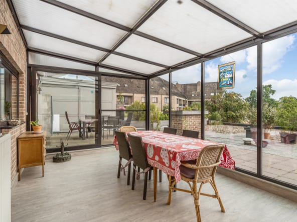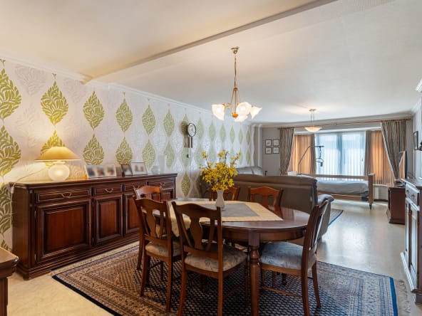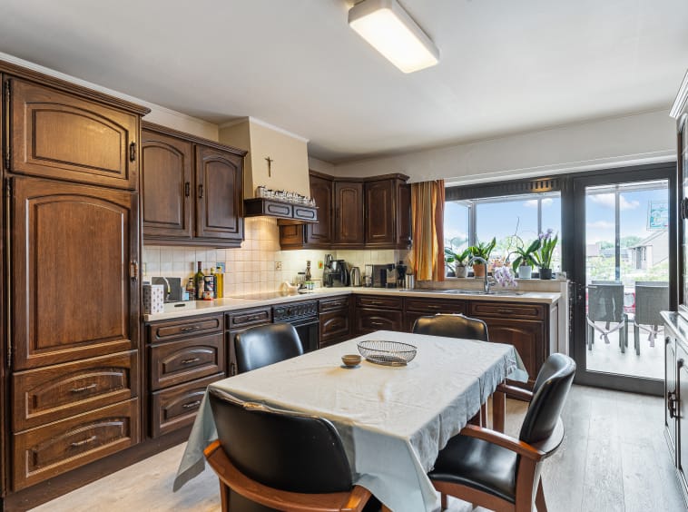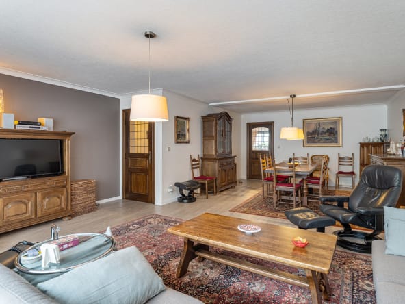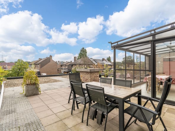 Op de eerste verdieping bevindt zich een riant appartement met een aangename leefruimte, veranda en een ruim terras. Dit zorgt voor een comfortabel woongevoel, zowel voor eigen gebruik als voor verhuur in het hogere segment.